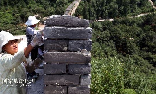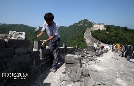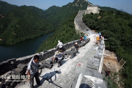 國家旅游地理 北京8月5日訊 8月4日下午,施工人員在北京懷柔西水峪古長城進行修繕。西水峪古長城始建于明代,此次修繕部分總長960米,在嚴格保障結(jié)構(gòu)安全以及原有風(fēng)貌的前提下進行恢復(fù)性修繕,修繕后將達到對游客開放攀登的標(biāo)準。預(yù)計修繕工程將于今年10月底完成,屆時經(jīng)過專業(yè)部門驗收后有望對外開放。 /新華社發(fā)(卜向東 攝)