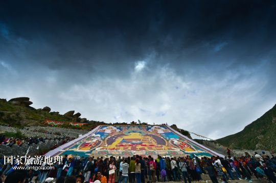 國家旅游地理 西藏拉薩8月6日訊 8月6日,拉薩哲蚌寺舉行展佛儀式。當日,以西藏最大的格魯派寺廟哲蚌寺展佛為開端的雪頓節(jié)在拉薩拉開序幕。每年藏歷六月底七月初是西藏傳統(tǒng)的節(jié)日“雪頓節(jié)”。在藏語中,“雪”是酸奶子的意思,“頓”是“吃”“宴”的意思,“雪頓節(jié)”按藏語解釋就是吃酸奶子的節(jié)日,因此又叫“酸奶節(jié)”。因為“雪頓節(jié)”期間有隆重熱烈的藏戲演出和規(guī)模盛大的曬佛儀式,所以有人也稱之為“藏戲節(jié)”“曬佛節(jié)”。 /新華社記者 普布扎西攝