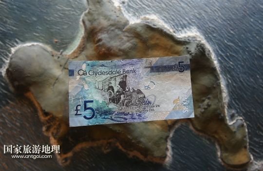 這是克萊茲代爾銀行發(fā)行的印有當(dāng)年圣基爾達(dá)島村民照片的5英鎊紙幣(7月18日攝)。