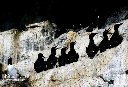 幾只海鴉棲息在圣基爾達(dá)島的巖壁上(7月20日攝)。