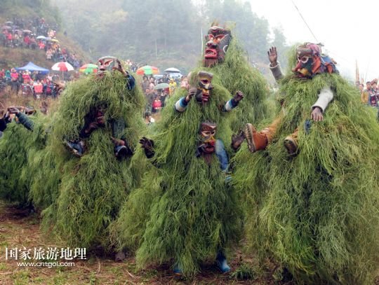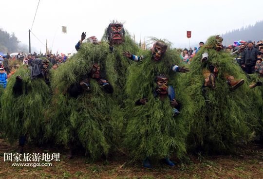 國(guó)家旅游地理 廣西柳州2月20日訊 2月16日,一名苗族青年戴著面具、披著芒草,扮成 “芒哥”跳舞。當(dāng)日是農(nóng)歷正月十七,地處深山的廣西柳州市融水苗族自治縣安陲鄉(xiāng)在江門(mén)苗寨舉行傳統(tǒng)的“芒哥節(jié)”。眾多苗族男性青少年戴著面具、披著芒草、扮成“芒哥”起舞,為人們驅(qū)邪避禍,送去新春的祝福。據(jù)介紹,演“芒哥”是當(dāng)?shù)孛缂胰霜?dú)具特色的新春傳統(tǒng)活動(dòng)之一。 /新華社發(fā)(龍濤 攝)