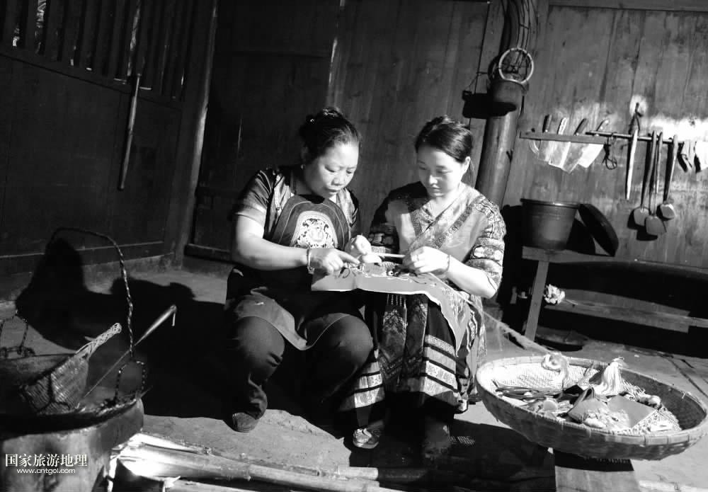 獨具風(fēng)情的地理位置并不能為苗繡的保存設(shè)防 ,在伍前金眼中 ,盡管臘里村遠離都市 ,但族人已被漢化。她說:現(xiàn)在居民從來不穿苗服了 ,也不再講苗語。”