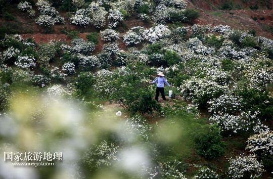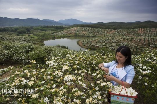 國家旅游地理 江西九江5月24日訊 5月24日,游客在黃梔子種植基地采摘梔子花。小滿時(shí)節(jié),在位于鄱陽湖畔的江西省九江市都昌縣土塘鎮(zhèn)潭湖村的坡嶺上,春輝黃梔子專業(yè)合作社6個(gè)種植基地的兩千多畝黃梔子全面進(jìn)入盛花期,種植園內(nèi)芳香四溢。黃梔子是傳統(tǒng)中藥材,花朵可觀賞、食用,果實(shí)可用于醫(yī)藥、染色、化妝品等領(lǐng)域。成立于2007年的都昌春輝黃梔子農(nóng)民專業(yè)合作社近年來致力于實(shí)施科技推廣、標(biāo)準(zhǔn)化種植和專業(yè)化經(jīng)營黃梔子,將黃梔子從“飄香”經(jīng)濟(jì)延伸到“染色”“藥用”深加工,進(jìn)軍省內(nèi)外市場(chǎng)。 /新華社發(fā)(傅建斌 攝)