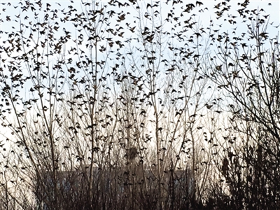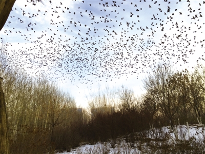 2015年12月30日下午,我在銀川市興慶區(qū)北塔公園游覽。走到北塔東北的樹林邊,突然看見一棵有些怪異的樹——數(shù)九寒冬,為何還有這么多樹葉?仔細(xì)一瞧,哪是什么樹葉,是數(shù)千只麻雀在樹上“開會(huì)”。密密麻麻,嘰嘰喳喳,無(wú)拘無(wú)束。我拿出手機(jī),剛拍了幾張,不知是聽了什么號(hào)令,麻雀?jìng)?ldquo;散會(huì)”了,瞬間全部飛向藍(lán)天,一個(gè)個(gè)狀如小飛機(jī)??吹贸?,麻雀?jìng)兺ο矚g銀川,活得挺自在。(通訊員 蓮子)